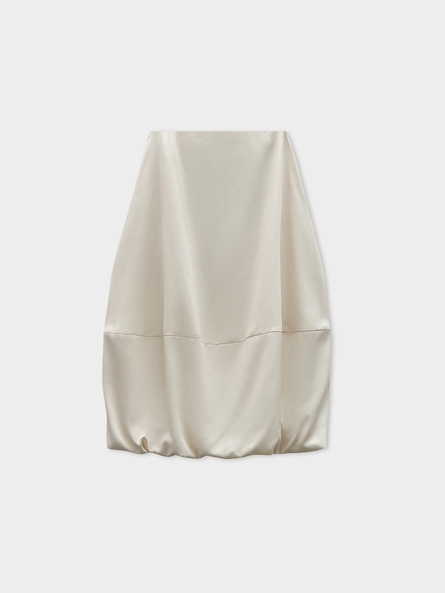 Юбка-баллон средней посадки с горизонтальным швом в области колена и напуском по низу, карманами в боковых швах и застёжкой на потайную молнию в среднем шве заднего полотнища юбки.