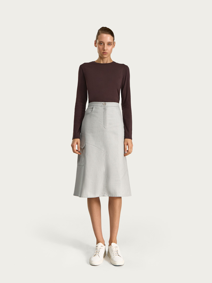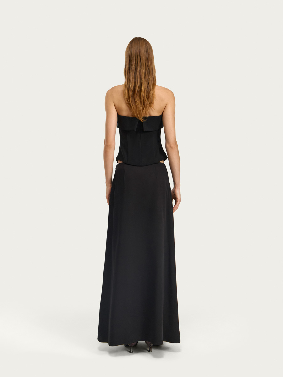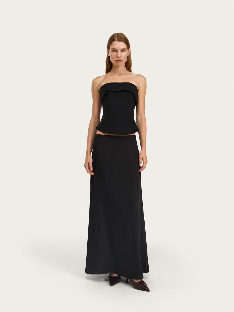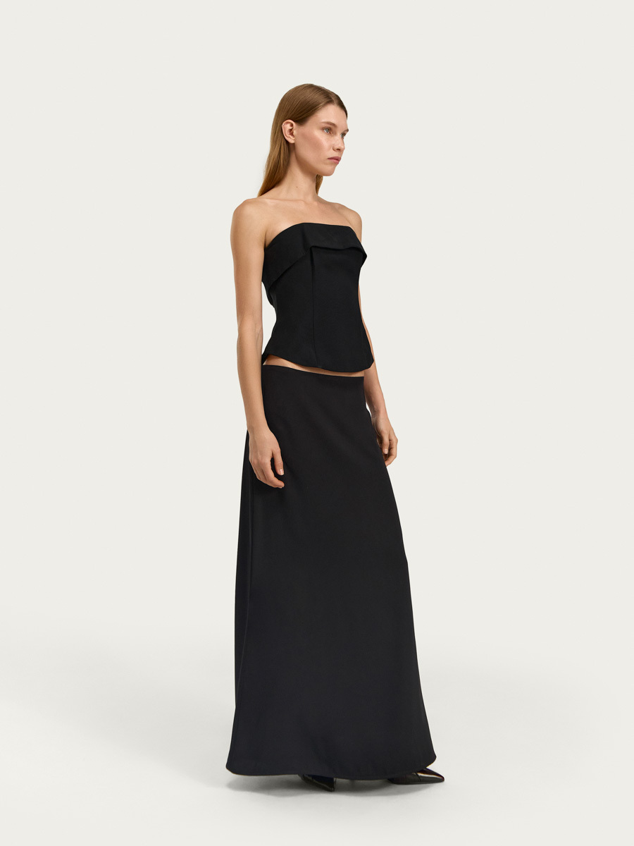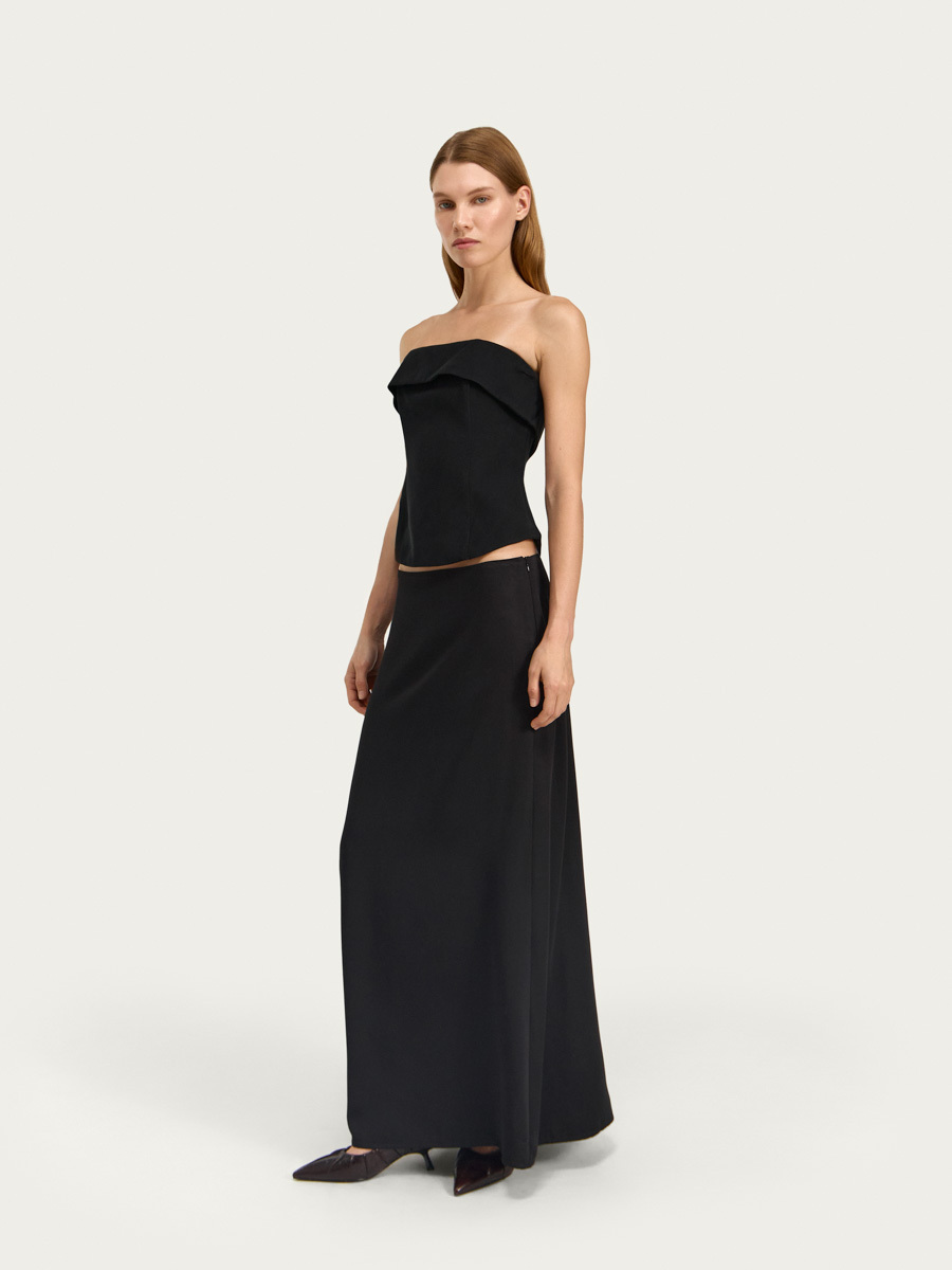 Юбка Фелиция средней посадки выполнена из легкой бархатистой ткани. Юбка имеет длину макси и небольшое расклешение от бедра. На заднем полотнище расположены талиевые вытачки, а в боковом шве - застежка на потайную молнию. Верхний срез юбки обработан подкладкой. Юбка Фелиция дополнит ваши образы.