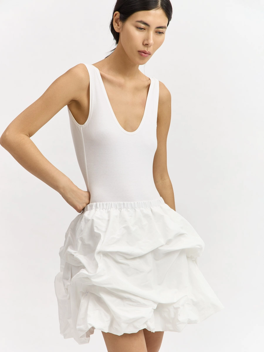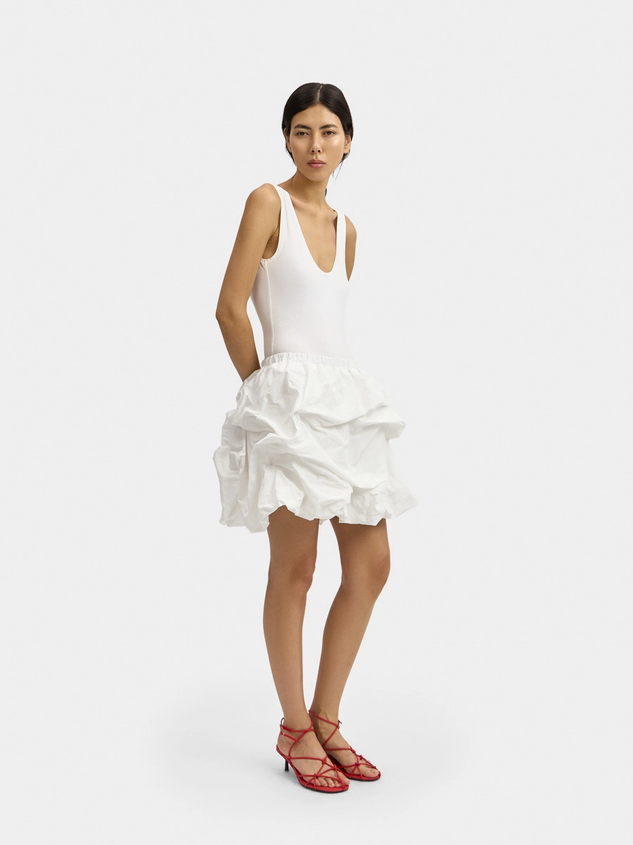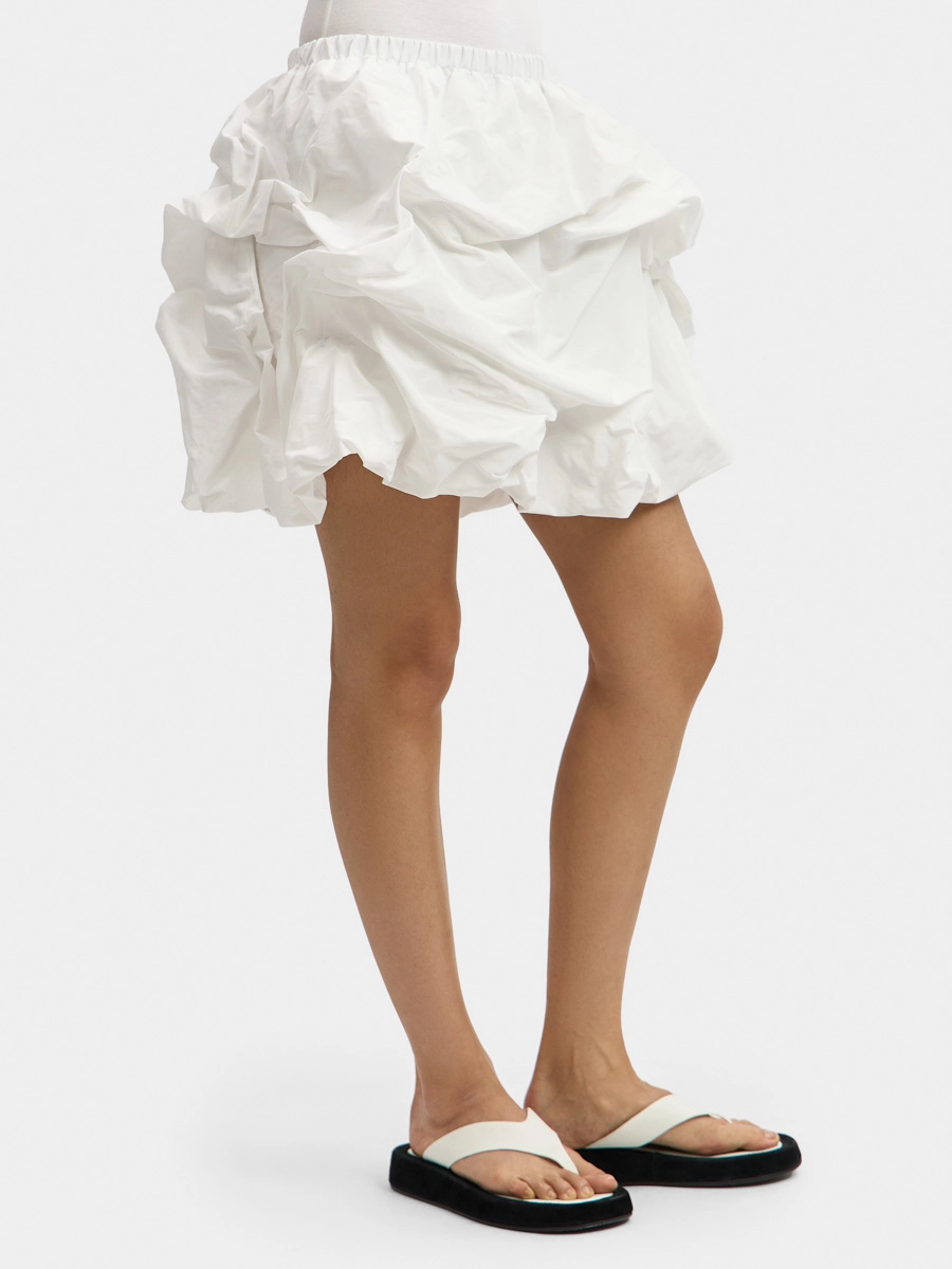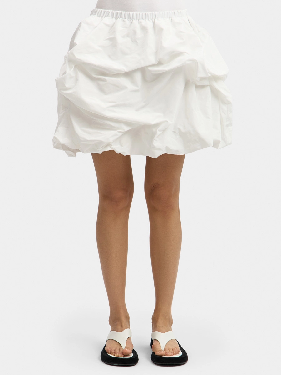 Объёмная юбка с воздушными мягкими складками по всему изделию, пояс с резинкой внутри, длина мини, изделие на подкладке.