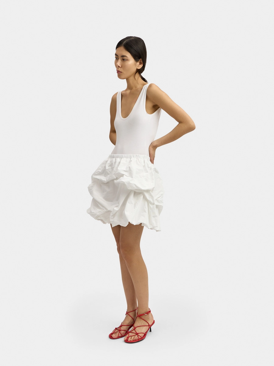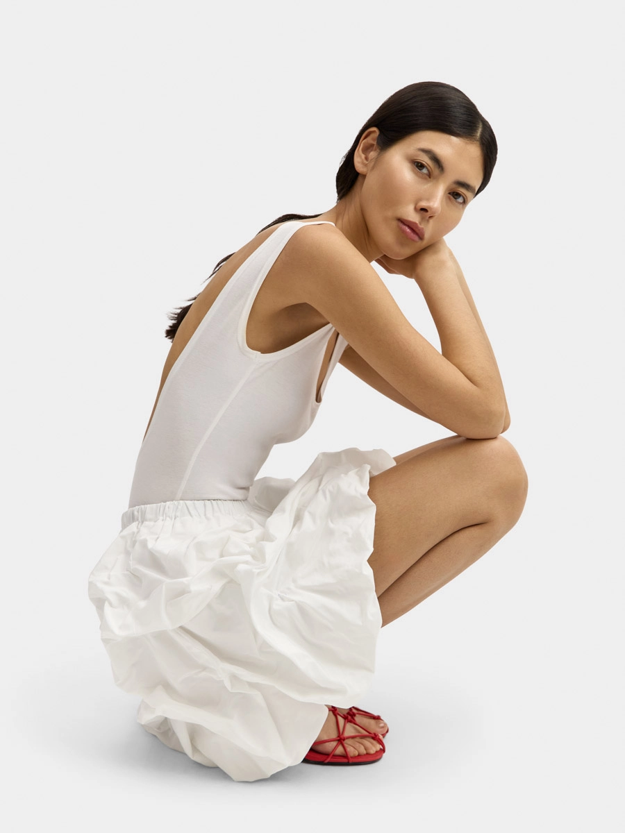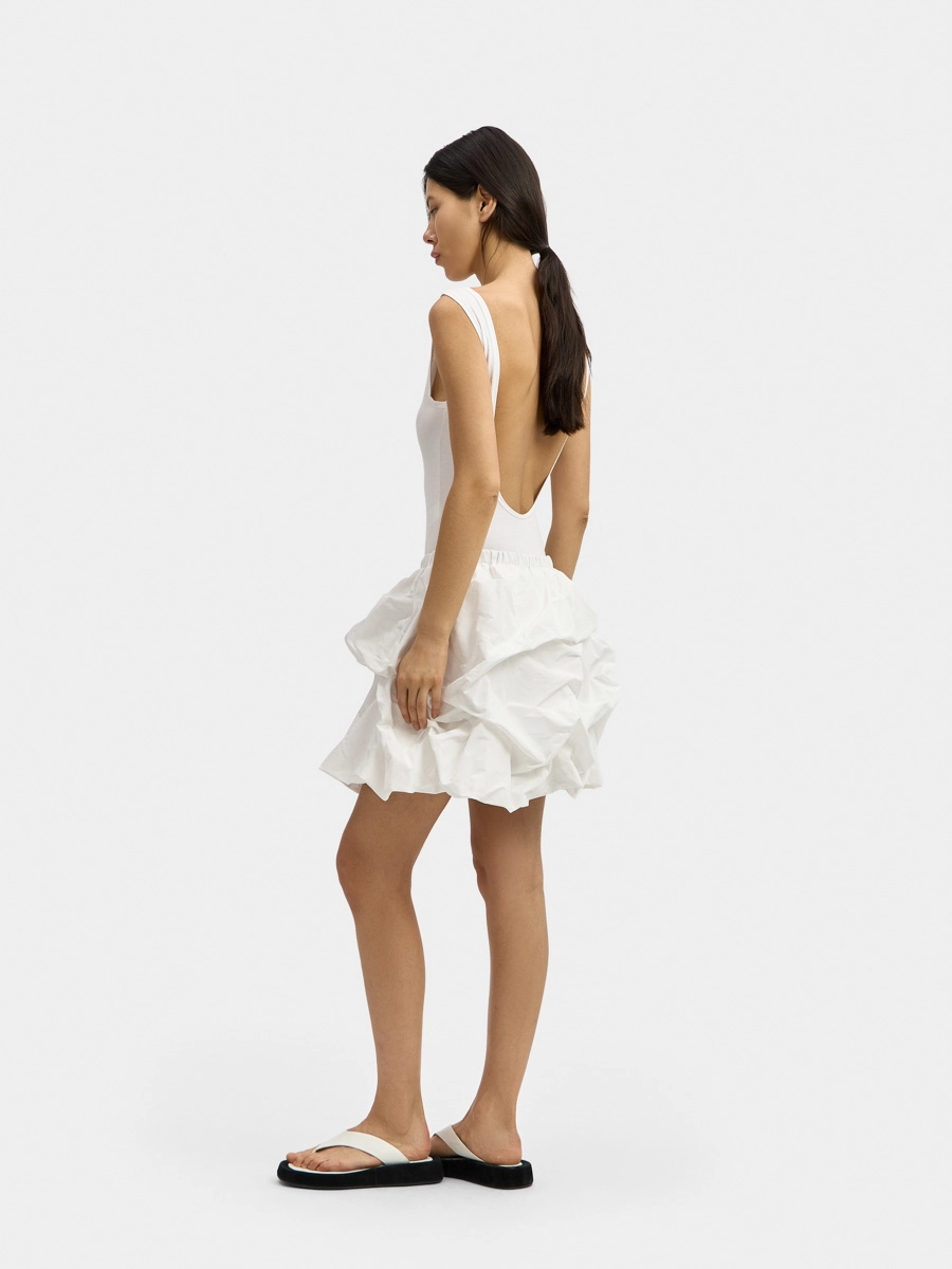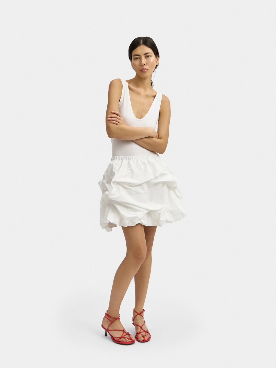 Объёмная юбка с воздушными мягкими складками по всему изделию, пояс с резинкой внутри, длина мини, изделие на подкладке.