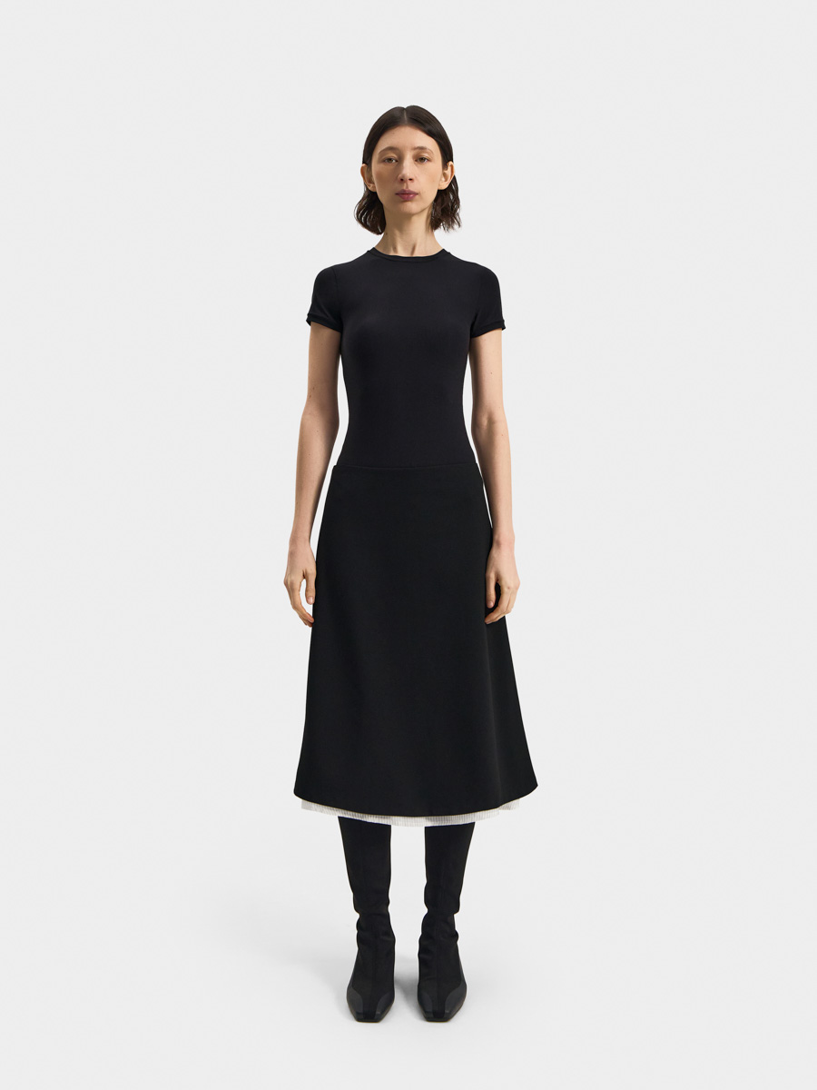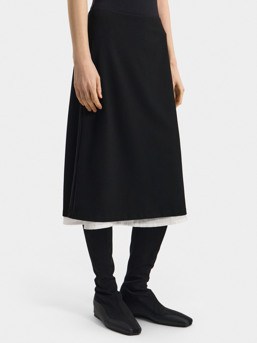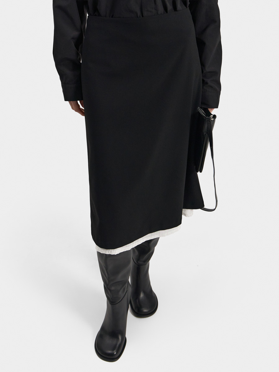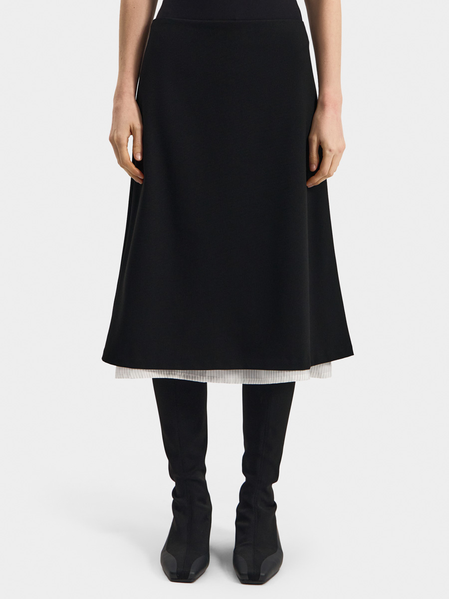 Юбка Лив силуэта-трапеция выполнена из костюмной ткани.