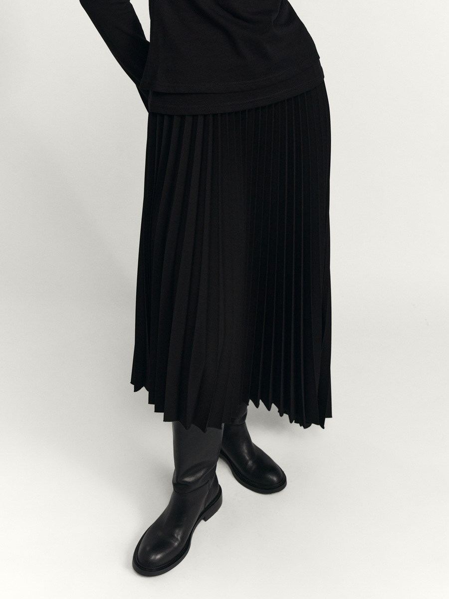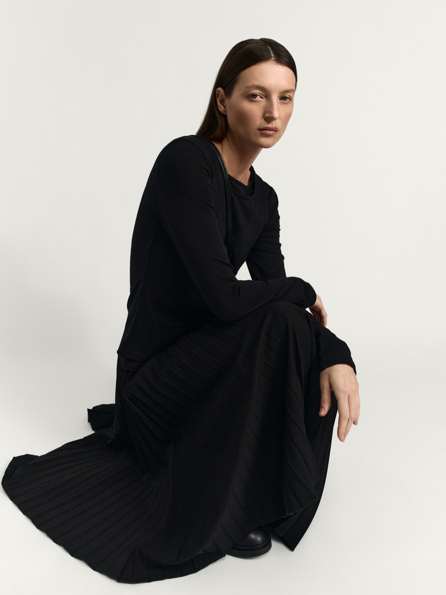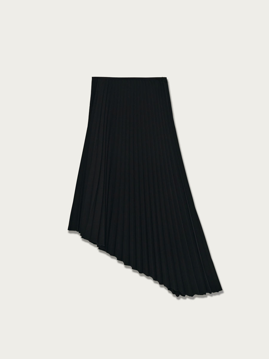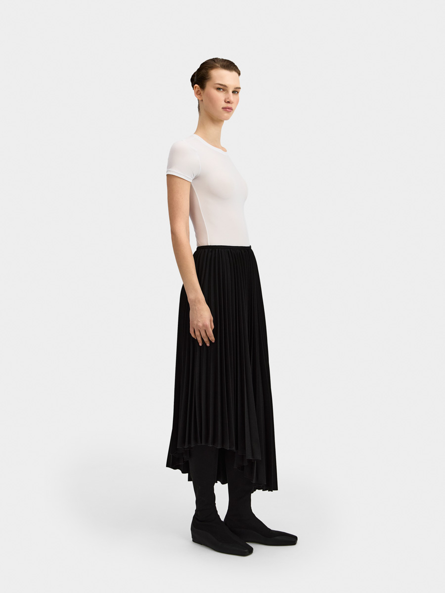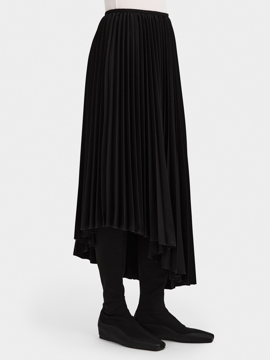Асимметричный низ дополняет плиссированную фактуру юбки.