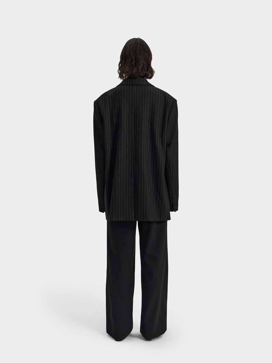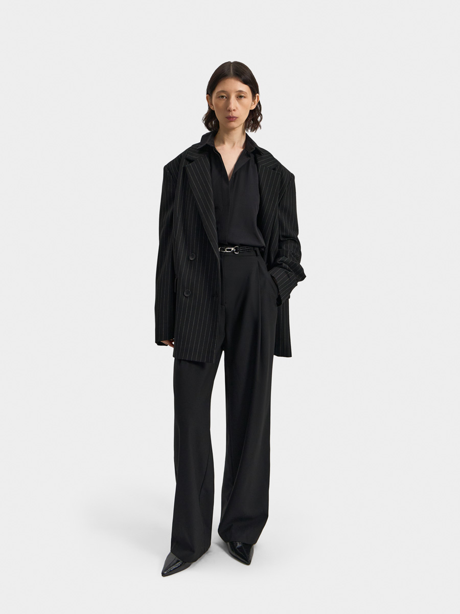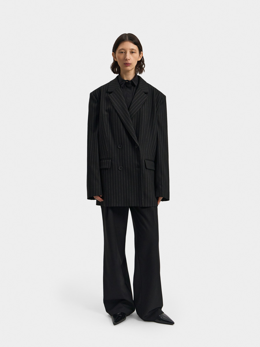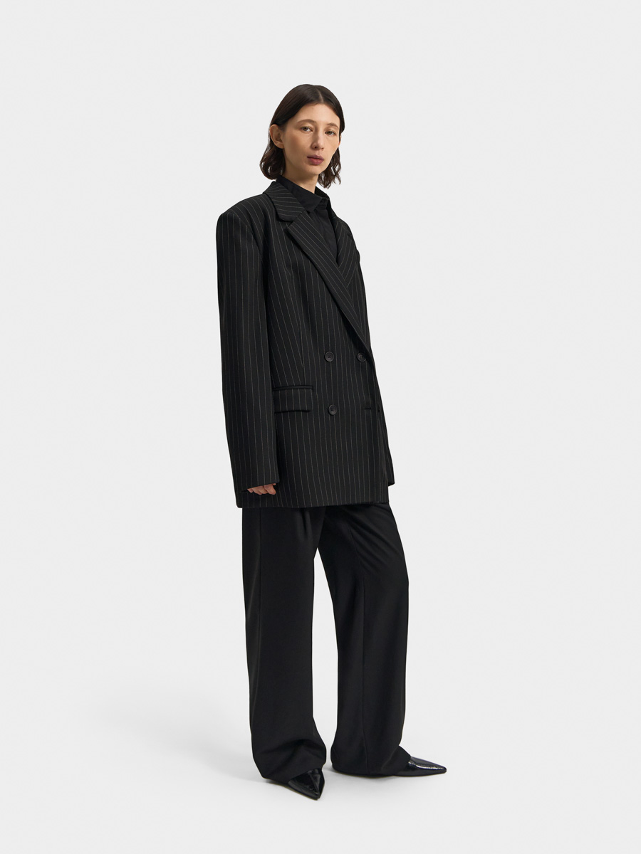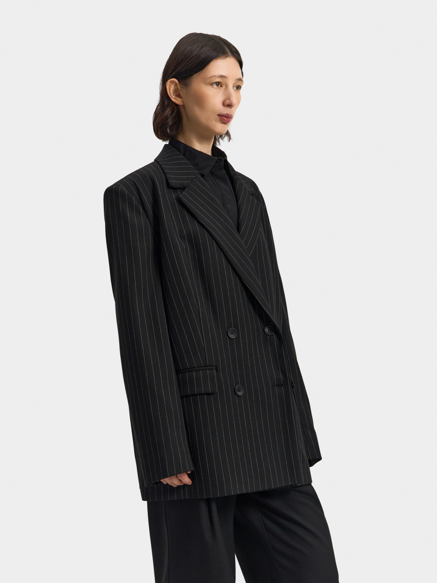 Двубортный жакет Ливерпуль из костюмной ткани в полоску.