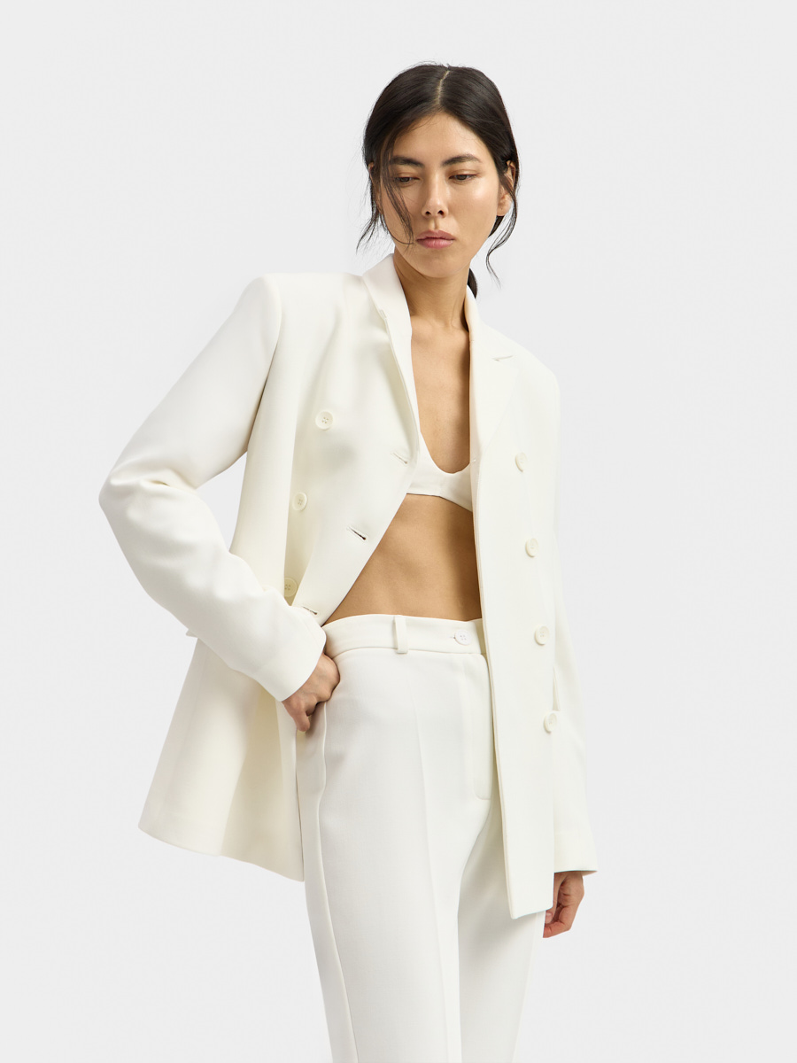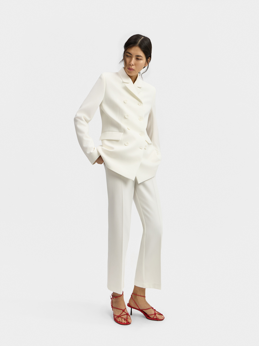 Жакет Нанкин двубортный составляет костюм с укороченными брюками Нанкин.